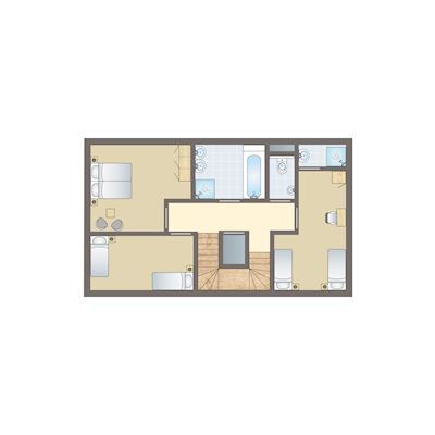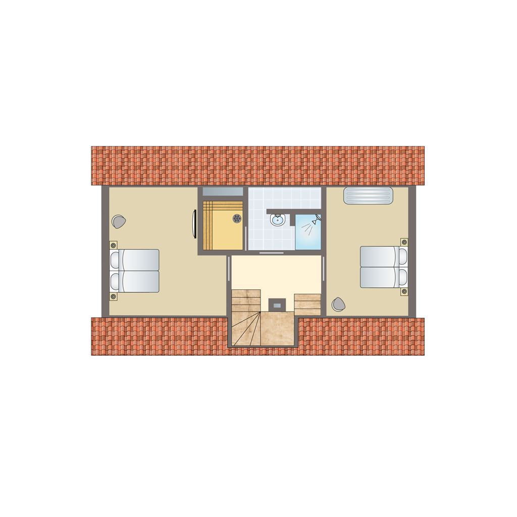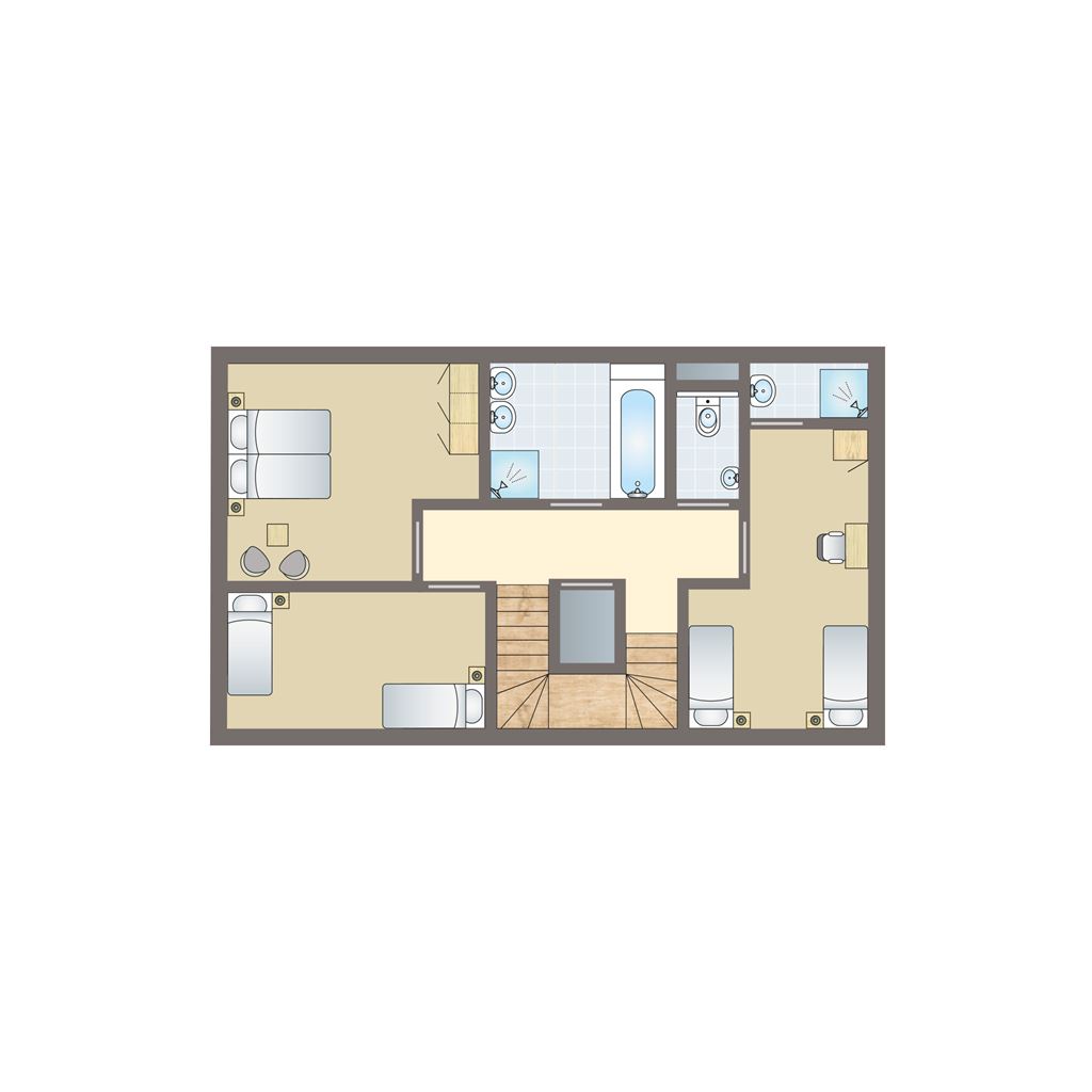 • Zwei Schlafzimmer mit jeweils zwei Boxspring-Einzelbetten auf der zweiten Etage