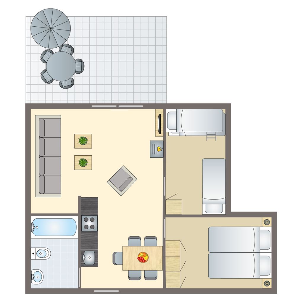 - Einige Unterkünfte sind über eine Treppe erreichbar