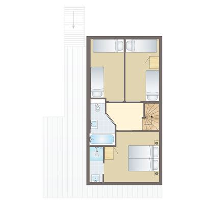 - Badezimmer (vom Schlafzimmer begehbar) mit ebenerdiger Dusche auf der ersten Etage