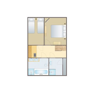 - Zwei Schlafzimmer mit Doppelbett oder zwei Einzelbetten im Untergeschoss