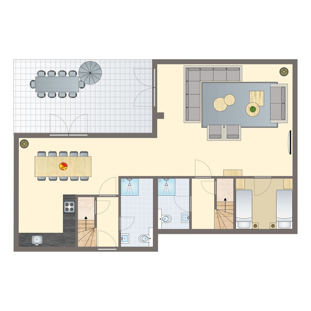 - Zwei Badezimmer mit jeweils Dusche und WC