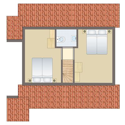 - Zwei Schlafzimmer mit jeweils zwei Boxspring-Einzelbetten auf der ersten Etage