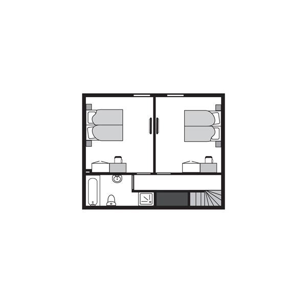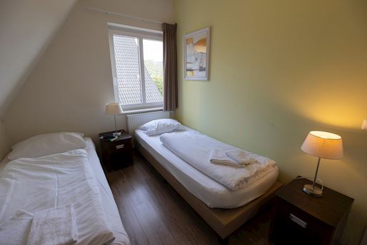 - Zwei Schlafzimmer mit jeweils zwei Boxspring-Einzelbetten
