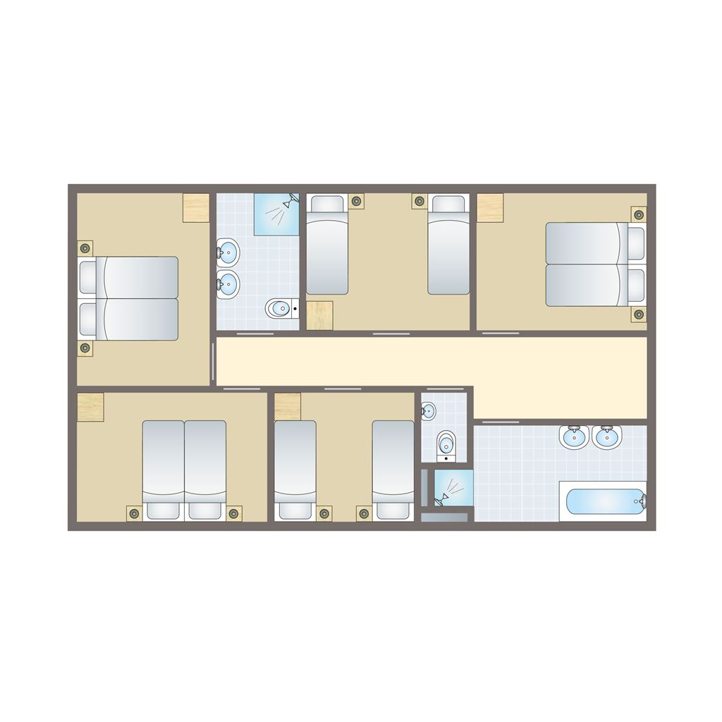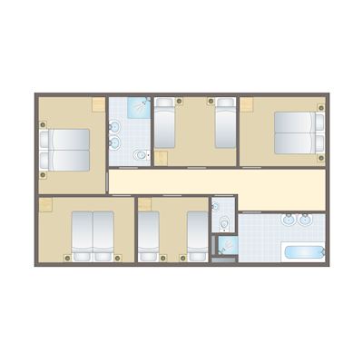 - Vier Schlafzimmer mit jeweils zwei Boxspring-Einzelbetten auf der ersten Etage