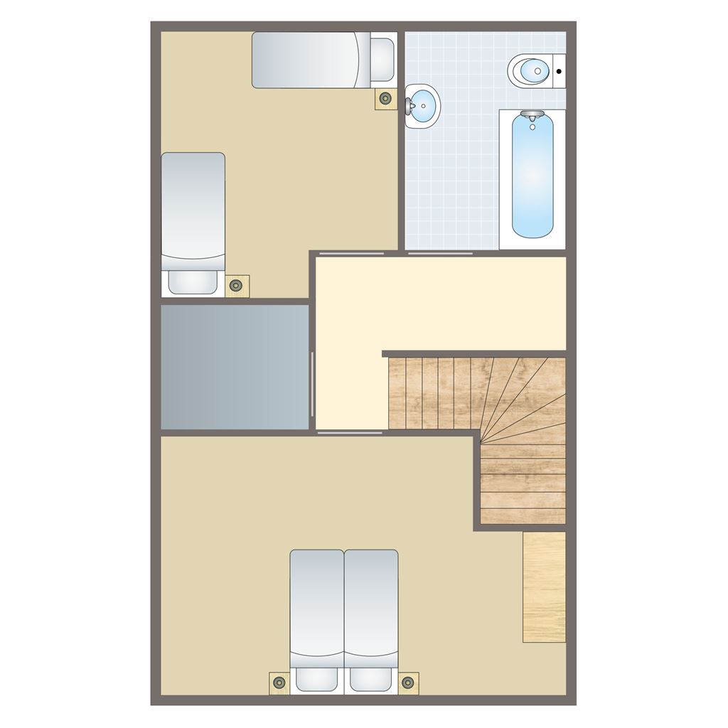 - Schlafzimmer mit zwei Boxspring-Einzelbetten auf der ersten Etage