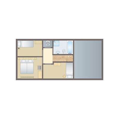 - Schlafzimmer mit zwei Boxspring-Einzelbetten auf der ersten Etage