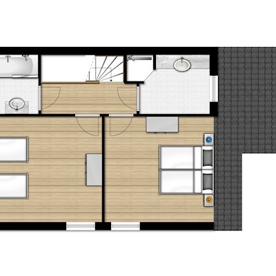 - Zwei Schlafzimmer mit jeweils zwei Einzelbetten