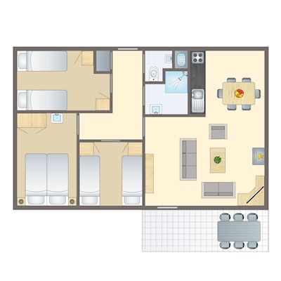 - Zwei Schlafzimmer mit jeweils zwei Boxspring-Einzelbetten