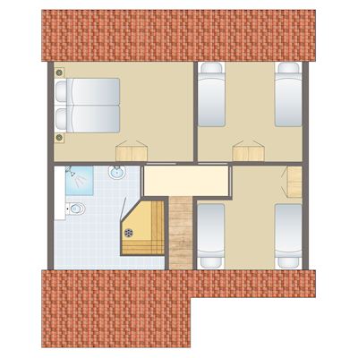 - Drei Schlafzimmer mit jeweils zwei Auping Boxspring-Einzelbetten auf der ersten Etage