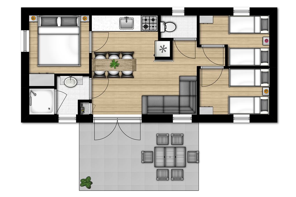 • Drei Schlafzimmer mit jeweils zwei Einzelbetten