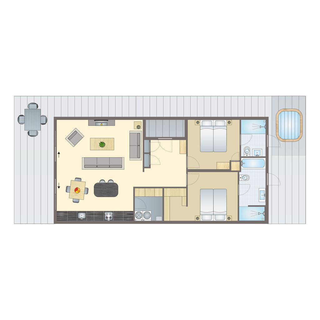 • Zwei Schlafzimmer mit Kingsize-Bett und 4K-Smart-TV