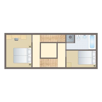 - Zwei Schlafzimmer mit jeweils zwei Boxspring-Einzelbetten auf der ersten Etage