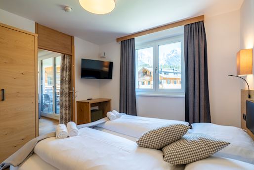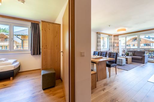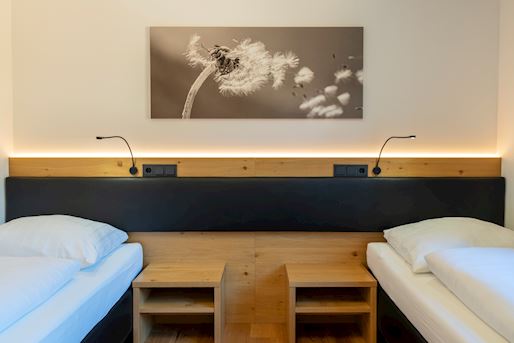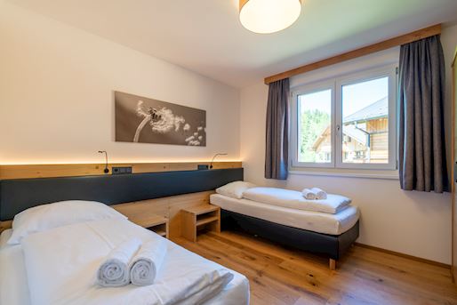 - Zustellbetten (bei Vollbelegung kann jeweils ein Bett im Wohnzimmer und ein Bett im Schlafzimmer aufgestellt werden)