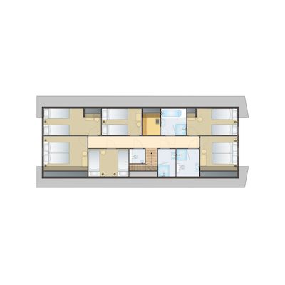 - Fünf Schlafzimmer mit zwei Einzelbetten