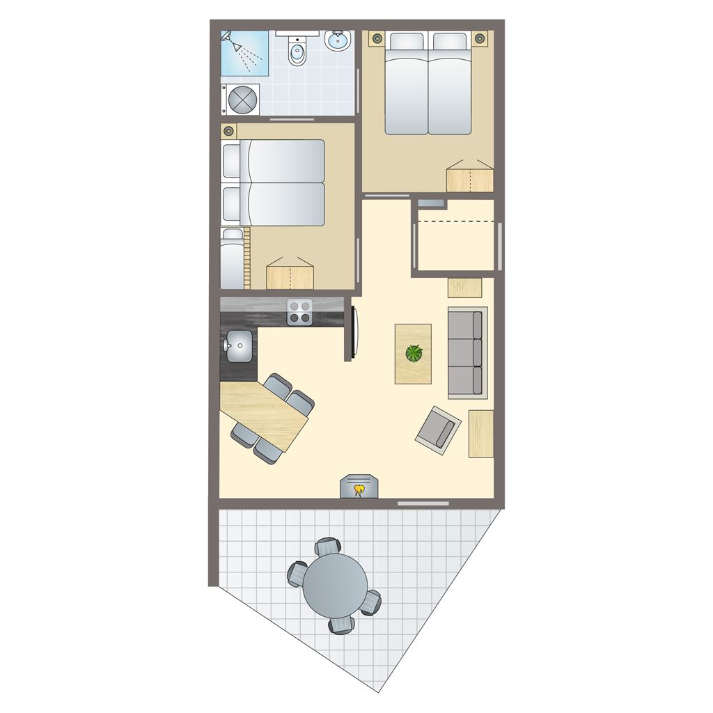- Zwei Schlafzimmer mit jeweils zwei Einzelbetten