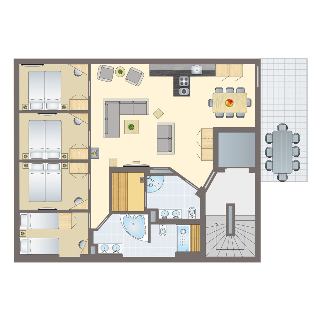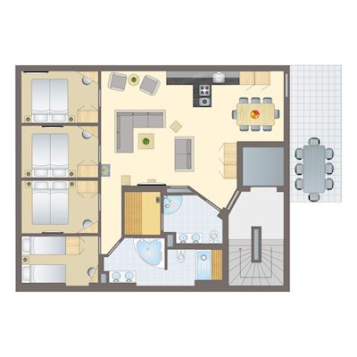 • Drei Schlafzimmer mit jeweils einem Doppelbett und Flatscreen-TV