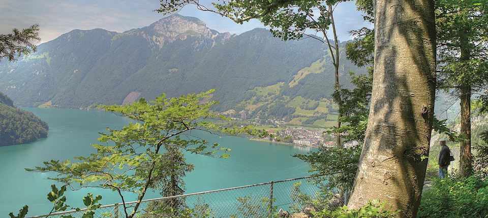 Die Rütliweide ist ein wichtiger Ort für die Schweizer, eine idyllische grüne Wiese mit Kühen und der Ausgangspunkt des Weges der Schweiz. Die Schweiz, wie Du es Dir vorstellst. Vom höchsten Punkt aus hast Du eine großartige Aussicht.