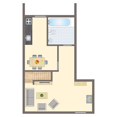 - Zwei Schlafzimmer mit jeweils zwei Einzelbetten oder ein Schlafzimmer mit zwei Einzelbetten und ein Schlafzimmer mit einem Etagenbett auf der ersten Etage