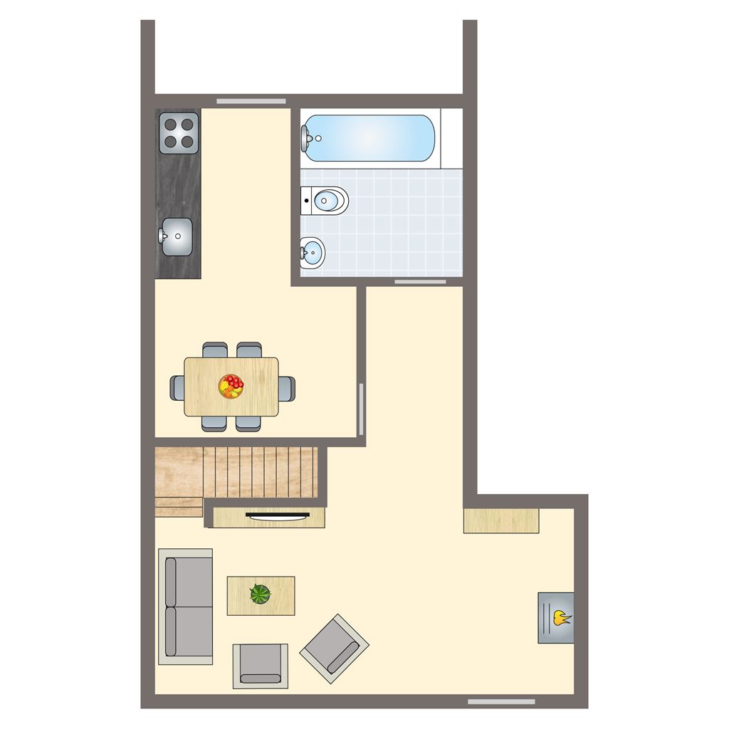 - Schlafzimmer mit einem Doppelbett oder zwei Einzelbetten auf der ersten Etage