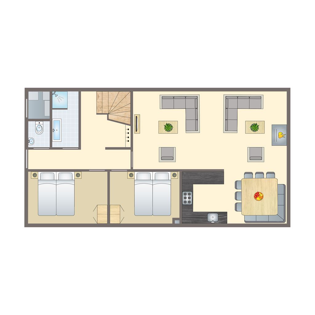 - Zwei Schlafzimmer mit jeweils zwei Boxspring-Einzelbetten auf der ersten Etage