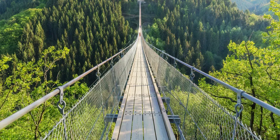 360 m lang, 100 m über den Boden, 365 Tage im Jahr - die Hängeseilbrücke im Hunsrückort Mörsdorf. Wer wagt sich auf die andere Seite?